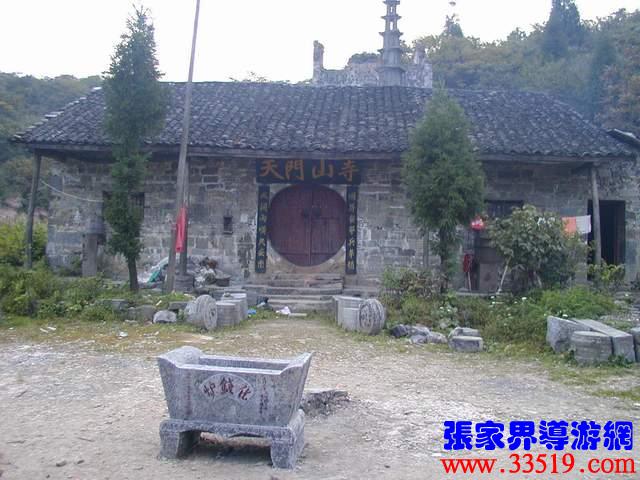 (天門山寺)天門山寺最早建于唐代,古稱云缽庵、靈泉院、嵩梁堂,明代時(shí),因擇址不當(dāng)而屢遭風(fēng)摧又常遭水荒,才將天門山寺從東部山頂遷移至此。以前這里古木參天,濃蔭蔽日。古寺門楣上刻有“天門仙山”四字,大門兩邊的對(duì)聯(lián)是:“天外有天天不夜,山上無山山獨(dú)尊”,傳為李自成部將野拂撰書。進(jìn)門為大佛殿后面有觀音堂,兩邊六間平房,最后一棟是祖師殿,規(guī)模宏大。民間概括為“三進(jìn)堂、六耳房,磚墻鐵瓦鍋如壙”。山寺原建筑十分講究,飛檐翹角,雕龍畫鳳,并塑有佛道神像菩薩等。還有大鼓一面,千斤大鐘一口,一座七級(jí)石塔和一個(gè)大化錢爐。據(jù)碑刻記載,自清乾隆至民國五年的163年間,天門山寺共修葺過七次,香火曾盛極一時(shí),湘鄂川黔邊境十多個(gè)縣的信徒絡(luò)繹不絕,都來這里進(jìn)香拜佛?,F(xiàn)天門山旅游股份有限公司正在大規(guī)模地修復(fù)天門山寺,昔日的繁華又將重現(xiàn)。