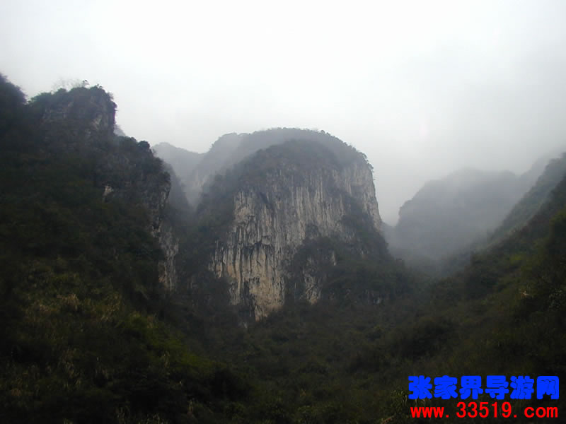 南天門——沿著河水一直往里走,在溪水最深處,可以仰望那隱藏在云霧里的南天門。它并不同于天門山的天門洞。它獨(dú)立于眾山之中,就像真正的通天大門,當(dāng)你翻過(guò)了前面的天門洞,卻還要再通過(guò)這座南天門,方可真正羽化登仙。南天門旁邊的幾座山峰,也都生的奇形怪狀,倒也天然形成了一個(gè)個(gè)大大小小的自然景觀。宛如天兵天將般守衛(wèi)南天門的將軍巖,象征南天門仙家氣息的蠟燭峰等,散落在四周,構(gòu)成了一個(gè)整體的山體奇觀。
