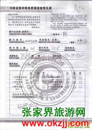 2010年3月23日江西熊先生一行兩位旅游質(zhì)量反饋