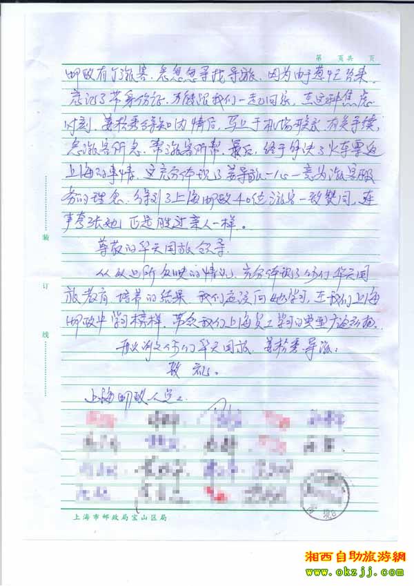 - 游客夏先生為表揚導游李姣姣寫來表揚信致我張家界... [14811]