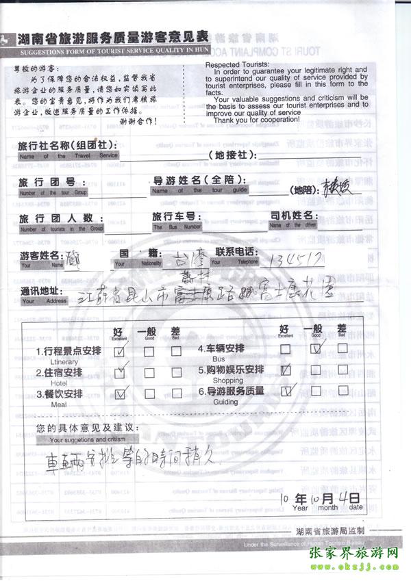 - 2011年10月26日張小姐一行18人旅游質(zhì)量反饋 [10482]