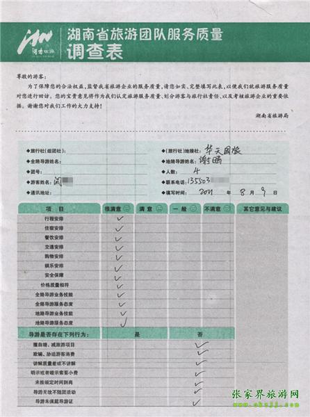 2011年8月9日閻小姐一行4人旅游質量反饋