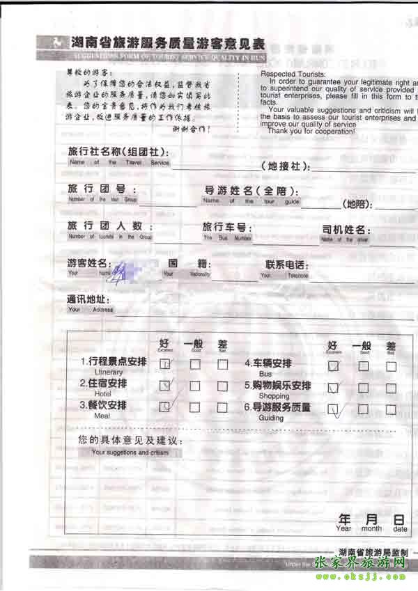 2010年11月4日王先生旅游質(zhì)量反饋
