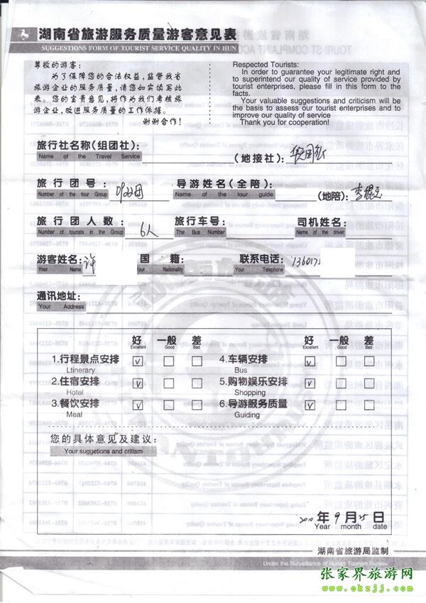 - 2011年10月26日張小姐一行18人旅游質(zhì)量反饋 [10482]