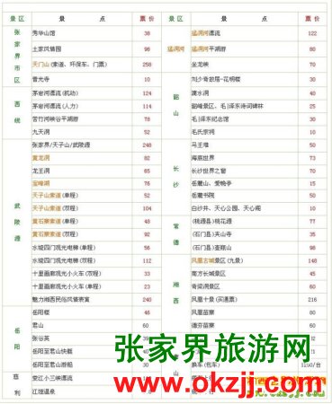 用一張更直觀的表來展示張家界旅游景點門票價格吧