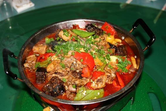 說到吃,鳳凰的苗家土雞、苗家臘肉、酸魚和血粑鴨是一定要嘗嘗的。苗家自釀的糯米酒每頓也要喝幾杯,雖然甜甜的,但后勁很大,要小心。臨走時可以從飯館買上10來斤酒和一些臘肉。早晨7~9點時,沿著東門內(nèi)的東正街往里走有個吃早飯的地方,生意火爆。店主人是一對夫婦,在門口賣米線、面、包子、煎餃、豬耳朵、豬頭肉、豬肘子、鹵蛋。