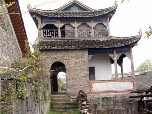 這是一處具有濃厚民族特色的建筑群,有大門、正殿、戲臺20多間屋宇,并有天井、天池、回廊,還設有“五福”、“六順”兩門。