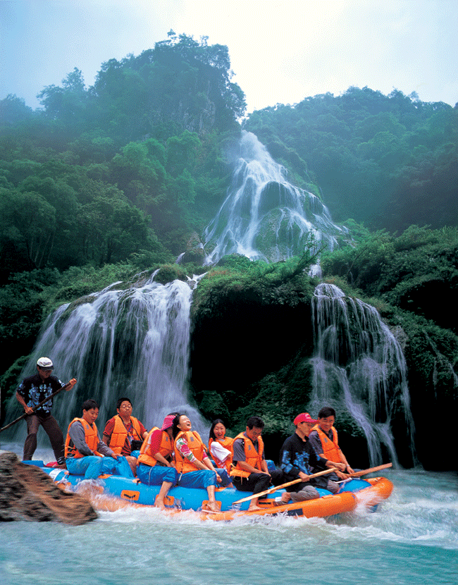 到了大門口,彭導幫我們?nèi)ベI了門票,248元/人,共花去496元。彭導先前給我們預(yù)算是,按最經(jīng)濟的帳目來算的,470元/人(包括進山大門票,但不包括索道、天梯、酒水等),他說出門在外,能節(jié)約點就節(jié)約點。當然他也知道我們可能會超出這個標準,如果有必要,到時可以再自己花費。買了門票后,我給了他500塊,算是這幾天的費用,他說,不是說好是每人470的嗎,你應(yīng)該是給我444塊。我說,上次謝謝您的關(guān)心,這次不能讓你太吃虧了。彭導說,那今天晚上我叫店家給你們加個菜,呵呵呵。 下午,我們玩了森林公園中的黃石寨和金鞭溪。看了天書寶匣、點將臺、南天柱、摘星臺、六奇閣,五指峰、金鞭溪、金鞭巖、文星巖、紫草潭、千里相會等,彭導果然是彭導,有著二十年的導游經(jīng)驗的他就是不同凡響啊,個個景點都是如數(shù)家珍,說得是頭頭是道。(據(jù)網(wǎng)上說,有些導游是只帶路不講解,讓人只是看看表面,而無法去領(lǐng)略張家界那些精美絕倫的凄美傳說。我個人認為張家界的傳說也是應(yīng)該值得每一個游人去了解,去領(lǐng)略的,如果你來張家界沒有聽到這些傳說的話,那一是你的導游的水平問題,二是你的一個很大的遺憾,你來張家界的經(jīng)歷是不完美的),什么龍蝦花的來歷,金鞭巖的前身,秦始皇和孟姜女與張家界的關(guān)系。晚上乘百龍電梯上袁家界(張家界的核心)一家旅館住宿。晚餐時,一葷一素一湯。我們吃著吃著,老板笑咪咪的搬上一鍋火鍋,當?shù)氐耐岭u火鍋。我們很詫異,我說,我們沒有點這個菜?。±习?,你是不是弄錯了?老板說,這是你們彭導叫我特地做的。我突然明白了,一定是彭導是為我多給的那50多塊錢了。由于長途奔波,加上下午又走了很多路,晚上洗了一個澡就睡下了。山里的氣溫很低,在這全國都如火爐時,張家界的晚上卻要蓋很厚的被子,真是一塊寶地啊。 第二天早上,我們參觀了袁家界的風景,其中最有名的當然數(shù)天下第一橋,這是由兩座巖石山的山頂自然生長在一起,非人所能為也。天下第一橋的稱號當之無愧啊。當然在袁家界,后花園也是不能不看的。張家界號稱“峰三千,水八百”,在這里你就能明顯的感覺到這句話的前半句是那么的實在??赐陱埣医绲暮诵脑医?,我們乘車到了天子山(張家界景區(qū)內(nèi)的最高的地方)。玩了賀龍公園、御筆峰、仙女散花、西海、石船出海、仙人橋、天子廟、十里畫廊、一步難行。不巧的是,那天山上下了一點陣雨,雨后一條彩虹掛在天上,更重要的是山上起了一點霧,使整座山都籠罩在霧中,若隱若現(xiàn),看上去就象是在云海中,好象老天特地配合我們似的,難得一見的西海等正好被我們趕上了。彭導告訴我們,這樣的機會是很難得的,可能是張家界為了感謝我的再次到來,給了我一個特別的禮物吧。我大笑。晚上趕到昨天住的地方去住宿。不提。 第三天我們玩了烏龍寨、三道鬼門關(guān)、天波府、一步登天、空中走廊等。主要是在楊家界的景區(qū)范圍內(nèi)。本來是第三天下午要去鳳凰的,但是考慮到我和女友小嵐好容易來張家界一次,盡量將張家界的能玩的地方去玩一下。我也曾聽說張家界不僅峰三千,水八百,同時天然溶洞也是非常不錯的,據(jù)說其中一個溶洞為一根鐘乳石投保了1個還是2個億,(不怎么記得了,呵呵。)而且在張家界的宣傳資料上還看到了有漂流,打水仗等非常刺激的項目。我于是問一下彭導,能否幫我們聯(lián)系一下,彭導很爽快的答應(yīng)了,他幫我們聯(lián)系了九天洞和茅巖河的公司。在彭導的上下打通下,本來是315元/人的行價,硬是給用278元/人的價格給拿下了。當搞定這些時,已經(jīng)外面是天黑一片了(彭導家就在楊家界)彭導說他想回家看看,明天我們會和一群人去看洞和漂流,他就不陪我們?nèi)チ?,明天下午他會在張家界市區(qū)去接我們,到時會有車送我們?nèi)ナ袃?nèi)。然后他會送我們上去鳳凰有車,并幫我們?nèi)ヂ?lián)系鳳凰的朋友來招待我們。 第四天,清晨我們便踏上了汽車去看洞漂流。號稱亞洲第一大洞的九天洞果然是名不虛傳,我們把它現(xiàn)在開發(fā)的部分粗略的走了一下,就花了我們近月4個小時,洞中鐘乳石遍地,在五彩斑闌的燈光下,顯得晶瑩剔透,閃閃發(fā)光,讓人感覺到是到了水晶宮一般,地下還有陰河,遠處通知海(據(jù)說)。對了,洞中溫度很低,常年在10多度。讓人在其中感覺到一陣陣寒意。故想進去的朋友記得多穿點衣服,以免著涼,切記。我們當時就是吃了很大的虧,從洞中出來時,小嵐就在點喀漱。下午來到茅巖河漂流。上船前看到有人賣水瓢,心中不免奇怪。雖說,張家界金鞭溪的水可以喝,但也不是每一條河的水都能喝???于是上前去問,一打聽才知道,這瓢不是用來舀水喝的,而是用來打水仗的。本來因為小嵐有點小感冒,我們打算保持中立,但一看到各位船友們個個磨拳擦掌,人手一把瓢或者水槍(這是當?shù)厝擞弥褡幼龅囊环N土水槍),還且對我們是虎視眈眈,我想我參加是不成了。于是我們也花了幾塊錢買了兩把。船開動后,大家開始時還是比較興奮,不時用瓢來劃一下船,但是沒多久,大家就開始尋找新的開心方式了,于是大家都開始蠢蠢欲動了,大家也都不客氣,不管別人是否作好應(yīng)戰(zhàn)準備,反正是先下手為強,其中一條船首先開火,于是大家都沒有在乎什么了,見著在自己